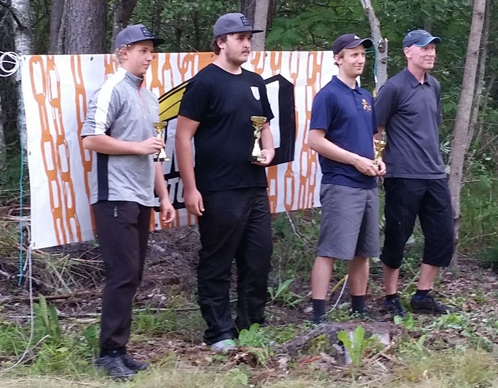 MA3-luokan palkitut: 1. Raul Mononen (2. vas) 2. Jaakko Ikonen (vas) 3. Jussi Nurmiranta (2. oik) sekä CTP-kilpailun voittanut Harri Raikaa